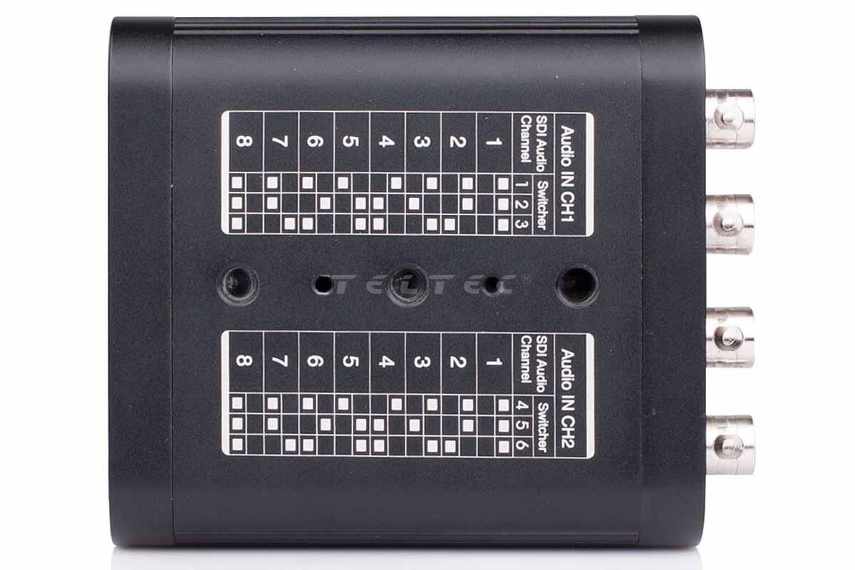 - Einbettung von Audio in 2 beliebige Kanäle der ersten 8-Kanal-SDI-Positionen