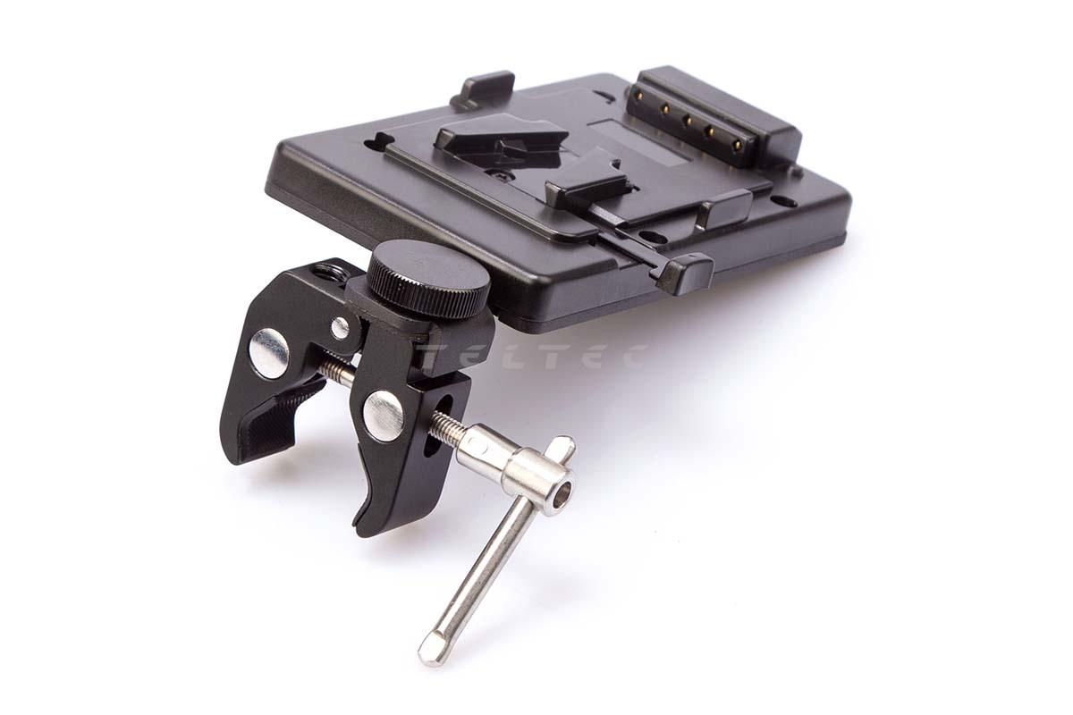 V-Mount Akkuplatte mit Anton Bauer (D-Tap) Ausgang und Stativklemme