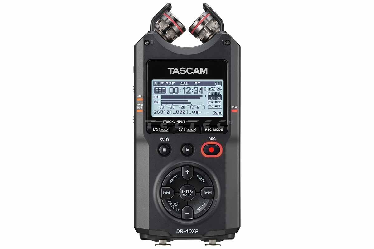Der Tascam DR-40XP ist ein kompakter 4-Spur-Handheld-Recorder mit moderner 32-Bit-Float-Aufnahme und vielseitigen Anschlussmöglichkeiten. Er eignet sich für mobile Aufnahmen, Interviews, Musikproduktionen und Videoanwendungen. Die Aufnahme erfolgt mit bis zu 96 kHz / 32-Bit Float, wodurch verzerrungsfreie Ergebnisse auch ohne exakte Pegeljustierung möglich sind. Die integrierten HDDA-Mikrofonvorverstärker sorgen für eine rauscharme Signalverarbeitung. Das integrierte Stereo-Kondensatormikrofon lässt sich flexibel in A/B- oder X/Y-Konfiguration betreiben und bietet eine Schalldruckverträglichkeit bis 125 dB SPL. Zusätzlich stehen zwei XLR/TRS-Kombieingänge mit Phantomspeisung (24 V / 48 V) für externe Mikrofone oder Line-Signale zur Verfügung. Der Recorder unterstützt Vierspuraufnahmen sowie Funktionen wie Overdub, Punch-In-Aufnahme und Mixdown. Ein integrierter MS-Decoder erweitert die Einsatzmöglichkeiten bei speziellen Mikrofonkonfigurationen. Für stabile Aufnahmen stehen verschiedene Aufnahmefunktionen zur Verfügung, darunter Limiter, automatische Pegelanpassung, Tiefenfilter (Low Cut) sowie eine Pre-Recording-Funktion für vorgezogene Aufnahmen. Die Speicherung erfolgt auf microSD-Karten bis 512 GB. Neben unkomprimierten WAV/BWF-Dateien unterstützt der Recorder auch MP3-Formate. Über den USB-C-Anschluss kann der DR-40XP als 2-In/2-Out Audiointerface genutzt werden oder für Datentransfer und Stromversorgung dienen. Die Stromversorgung erfolgt über AA-Batterien, USB oder optionales Netzteil. Mit Batteriebetrieb sind mehr als 29 Stunden Laufzeit möglich.