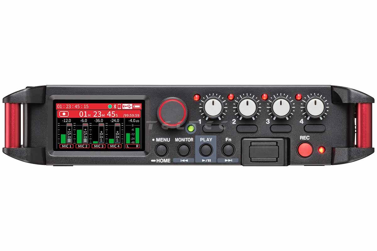 - Kabelloses Monitoring via App „Tascam Recorder Connect“ (Erfordert optionalen Bluetooth-Adapter Tascam AK-BT2)