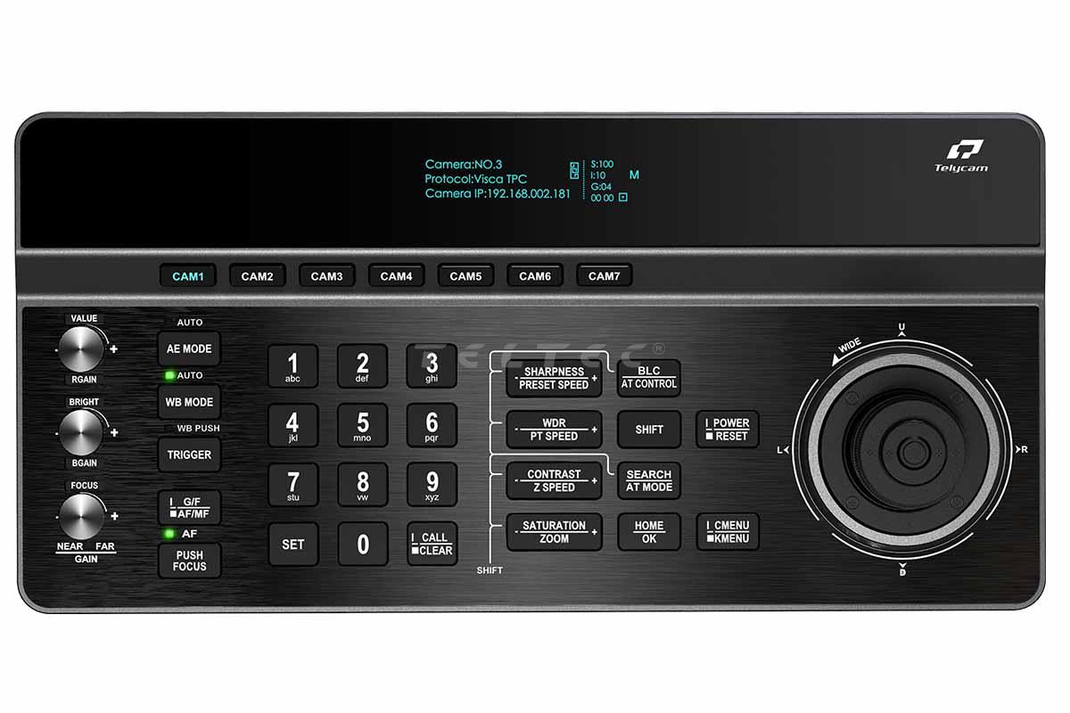 Der Telycam V-Joy+ AT ist ein leistungsstarker PTZ-Controller mit Auto-Tracking, kompatibel mit NDI®|HX, VISCA, ONVIF und mehr. Mit präzisem Joystick, OLED-Display, 256 Presets und sieben Schnelltasten ist er ideal für professionelle Video-Workflows.
