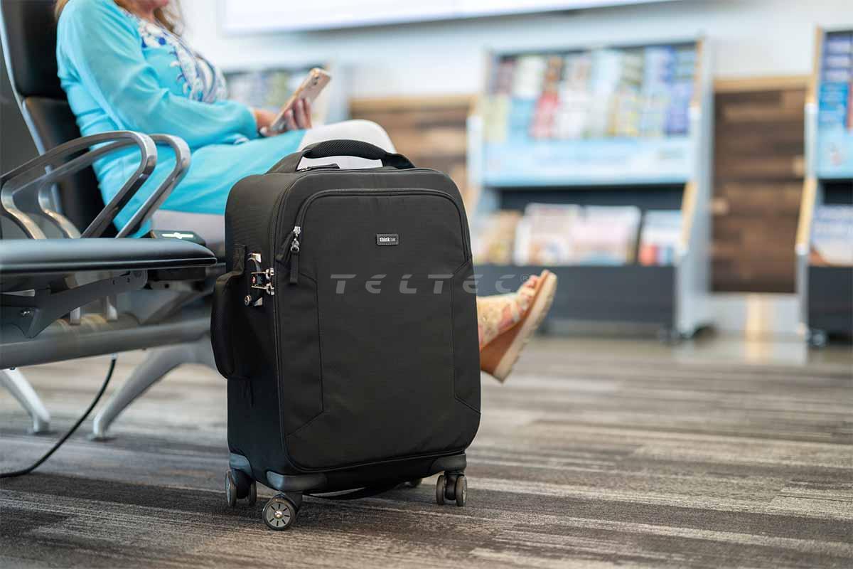 Der thinkTank Airport Roller Derby V2.0 ist ein 8-rädriger Kamerakoffer, der sich leicht in engen Räumen manövrieren lässt und nur minimalen Kraftaufwand beim Schieben oder Ziehen erfordert. Der Roller bietet Platz für zwei Kameragehäuse mit einem maximalen Objektiv von bis zu 400 mm f/2.8 (nicht montiert) und ist somit ideal für reisende Fotografen.