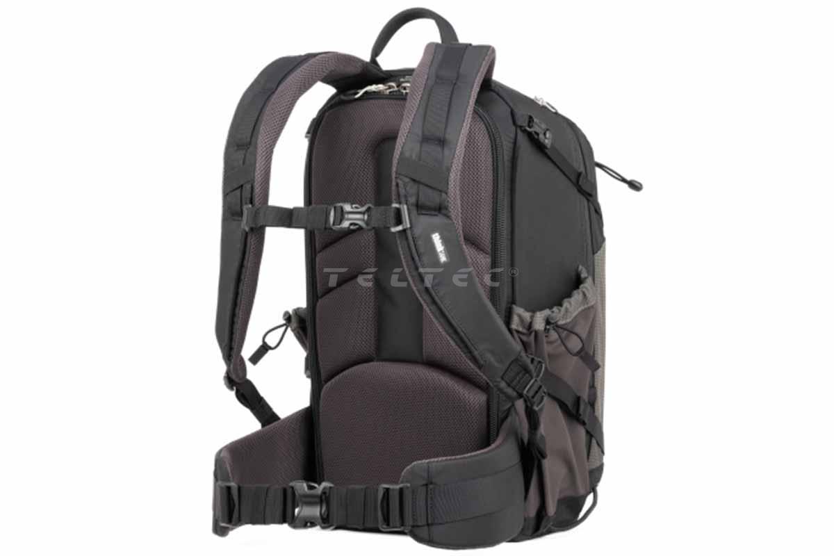 Der thinkTank BackLight 26L Slate Black setzt Think Tanks Engagement fort, Fotografen schnellen Zugriff auf ihre Ausrüstung zu ermöglichen. Die Öffnung am Rückenteil erlaubt den Zugriff auf die Ausrüstung, wenn das Absetzen des Rucksacks keine Option ist. Der Reißverschluss an der Rückseite reduziert die Menge an Staub, Schlamm, Eis oder anderen Elementen, die mit der Ausrüstung oder dem Rucksack in Kontakt kommen, und hält gleichzeitig das Schultergurtsystem sauber. Der BackLight 26L bietet 9 L Packvolumen für persönliche Gegenstände, darunter separate, speziell dafür vorgesehene Fächer für ein 10" Tablet und ein 16" MacBook Pro.