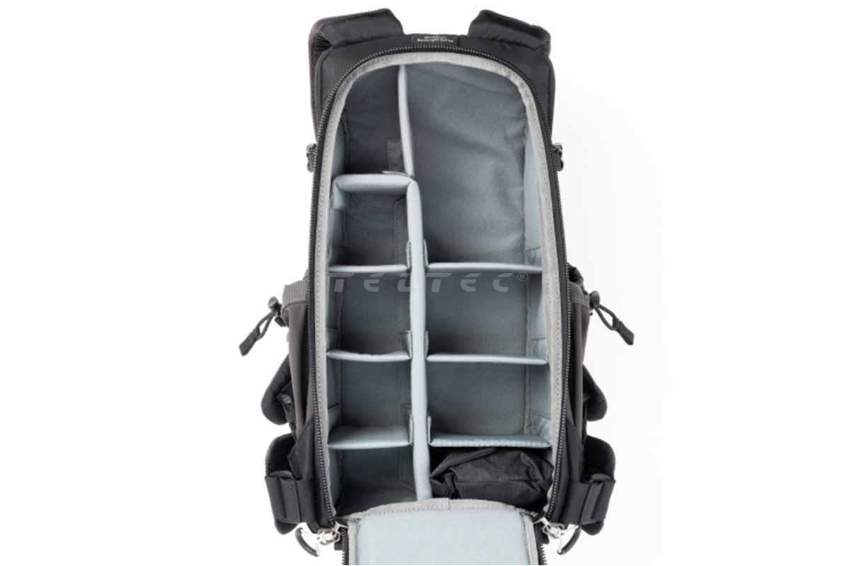 - Verstellbare Trennwände für große Teleobjektive, traditionelle Fotoausrüstung oder persönliche Gegenstände
