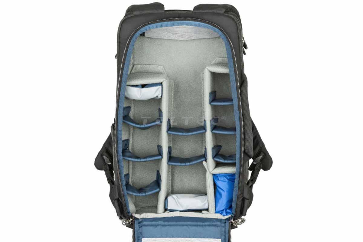 - Durch das individuell anpassbare Trennsystem mit zwei Kissen, lassen sich zwei Kameras optimal geschützt verstauen.