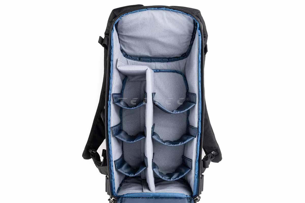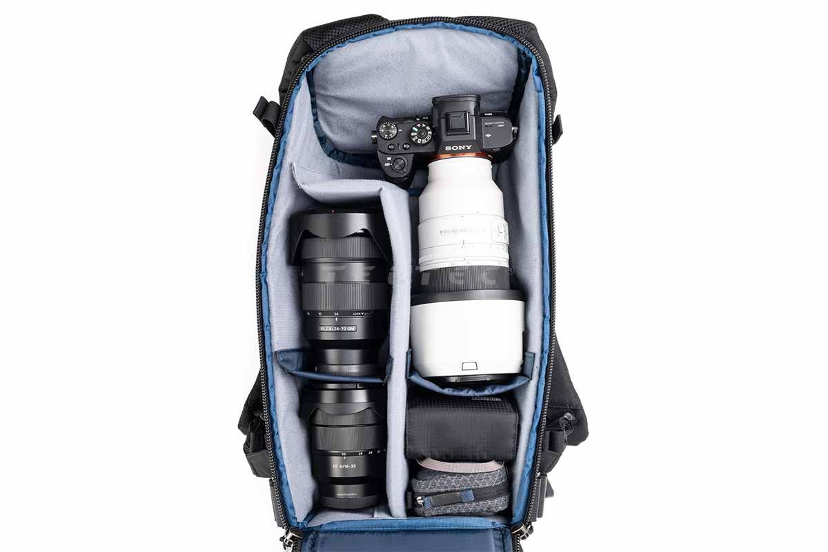 - Verstellbare Trennwände bieten Platz für große Teleobjektive, traditionelle Fotoausrüstung oder persönliche Gegenstände