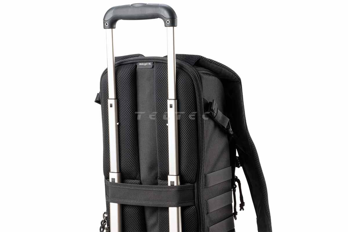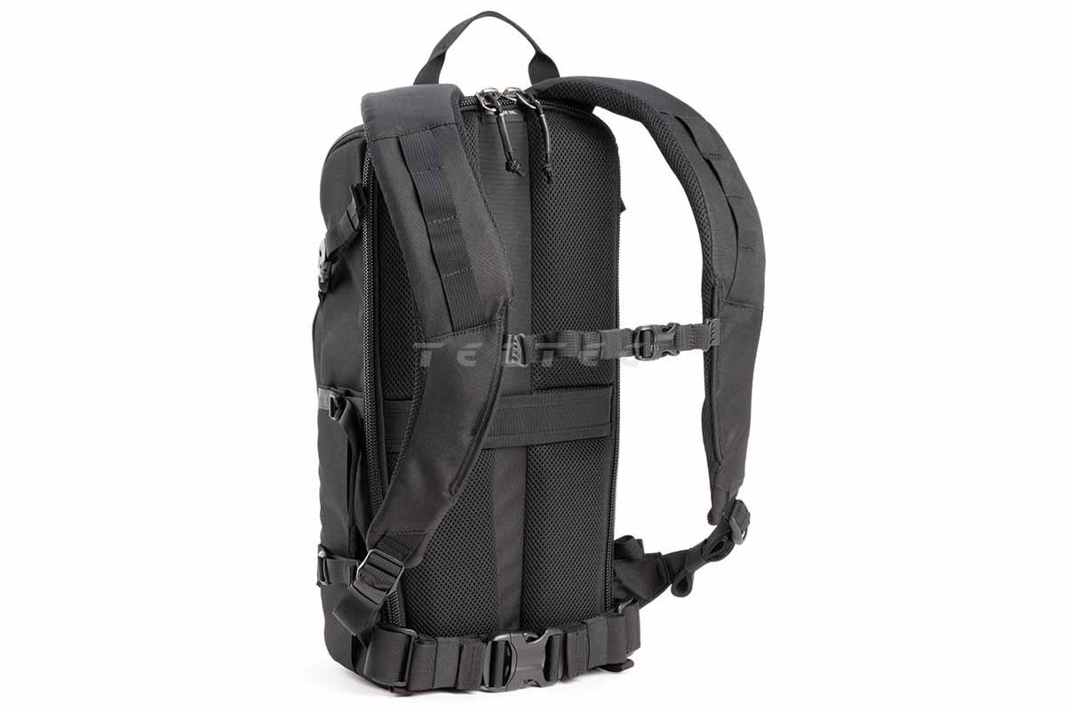 Der thinkTank DarkLight Backpack 14L - black ist ausgestattet mit einer lasergeschnittenen MOLLE-Element und taktischen Gurtschschlaufen und ermöglicht eine präzise Anpassung an die Ausrüstung. Man kann die Tragkapazität durch nahtlose Befestigung von Think Tank-Modultaschen nahtlos erweitern.