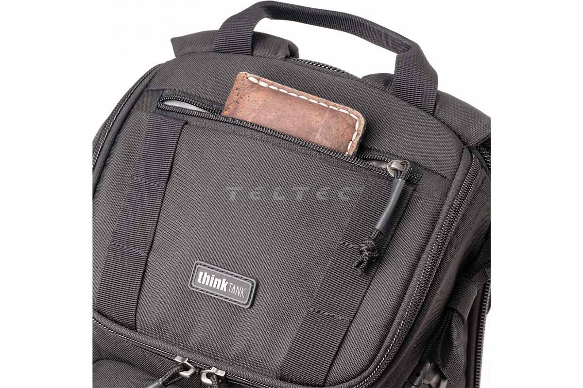 - Taktische Gurtschlaufen an der Seite ermöglichen die Befestigung von Think Tank-Modultaschen