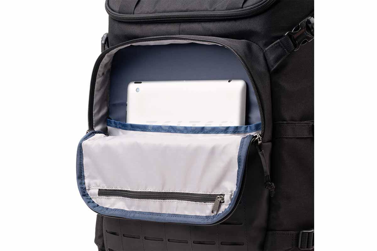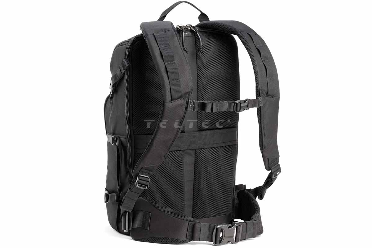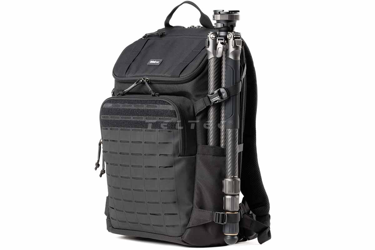 Der thinkTank DarkLight Backpack 20L - black ist ausgestattet mit einer lasergeschnittenen MOLLE-Element und taktischen Gurtschschlaufen und ermöglicht eine präzise Anpassung an die Ausrüstung. Man kann die Tragkapazität durch nahtlose Befestigung von Think Tank-Modultaschen nahtlos erweitern.