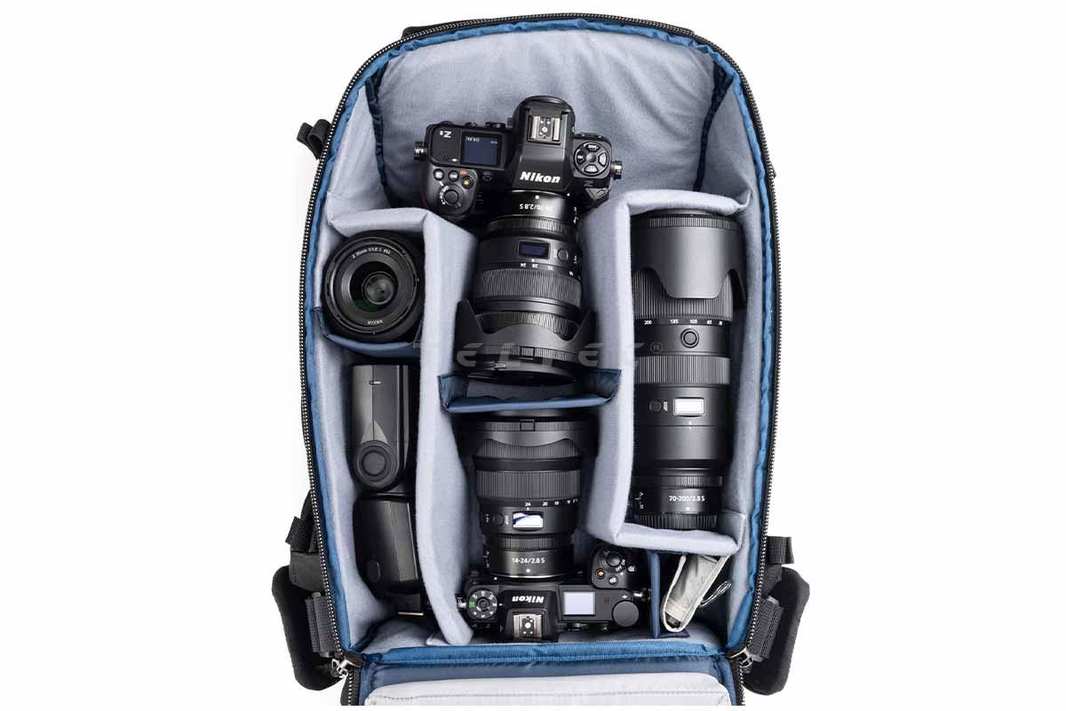 - Verstellbare Trennwände bieten Platz für große Teleobjektive, traditionelle Fotoausrüstung oder persönliche Gegenstände