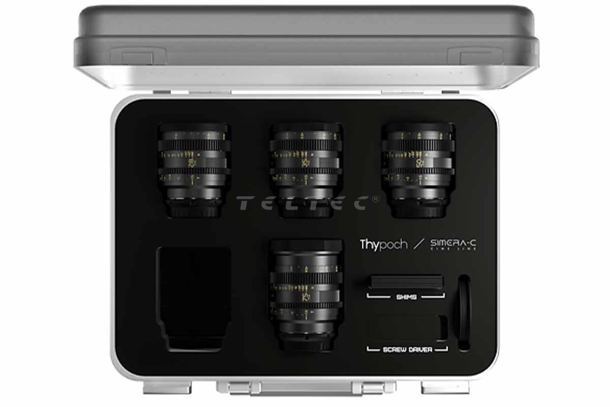 Das Thypoch Simera-C 5-Lens Kit umfasst fünf kompakte High-Speed Cine Prime-Objektive mit den Festbrennweiten: 21 mm, 28 mm, 35 mm, 50 mm und 75 mm. Sie verfügen über einen Blendenbereich von T1.5 - T16 und decken einen Bildbereich von 43,2 mm Durchmesser Vollformat ab. Zudem sorgen 16 Blendenlamellen für ein weicheres und rundes Bokeh mit definierten Flares sowie für eine hervorragende Leistung auch bei schlechten Lichtverhältnissen. Die Optiken werden in einem Transportkoffer aus Aluminium geliefert.