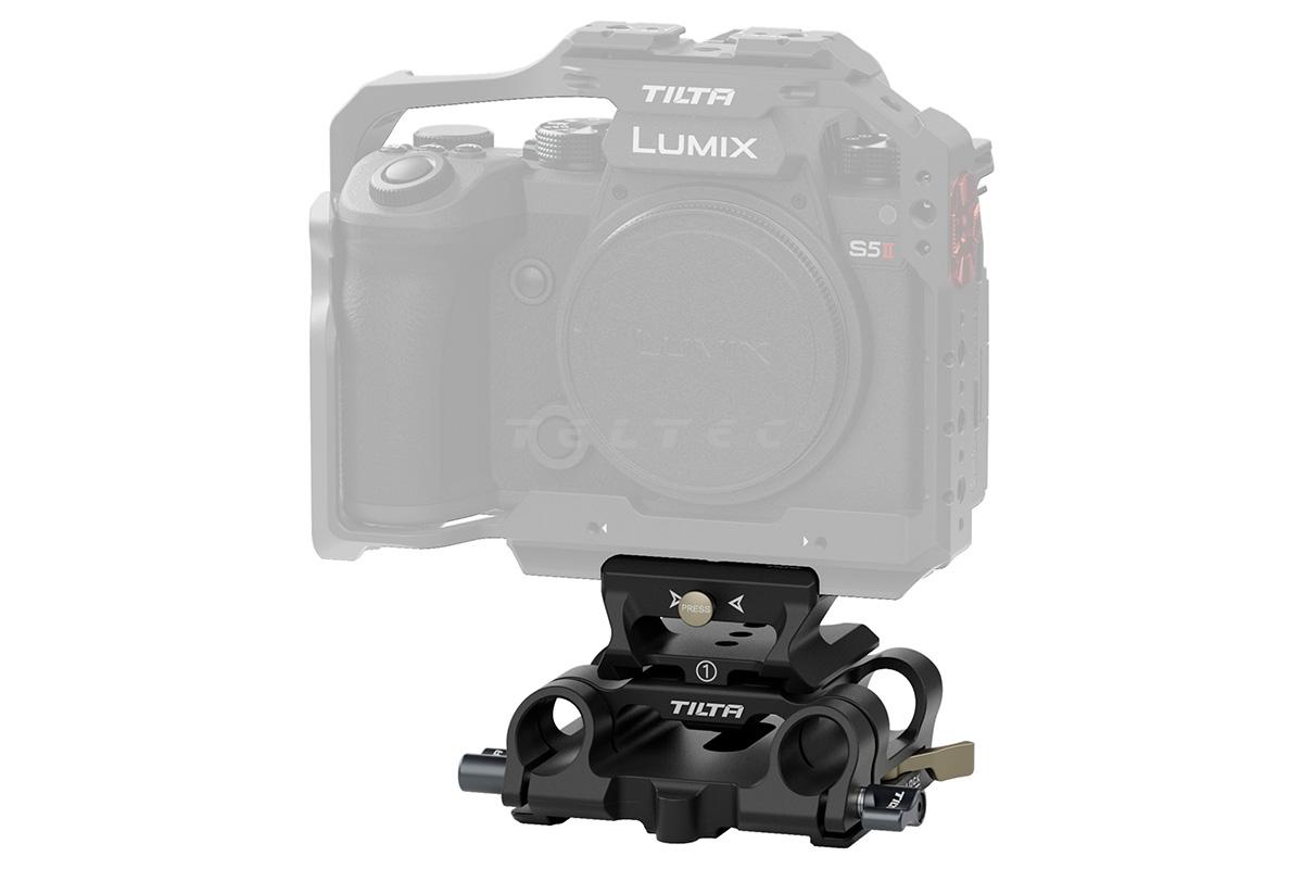 Die Tilta Modular 15mm LWS Baseplate Type I - Black (TA-MBP1-B) ist eine modulare 15 mm LWS Basisplatte mit ACRA-Swiss Aufnahme, die beispielsweise passend für die Panasonic Lumix DC-S5II oder DC-S5IIx ist.