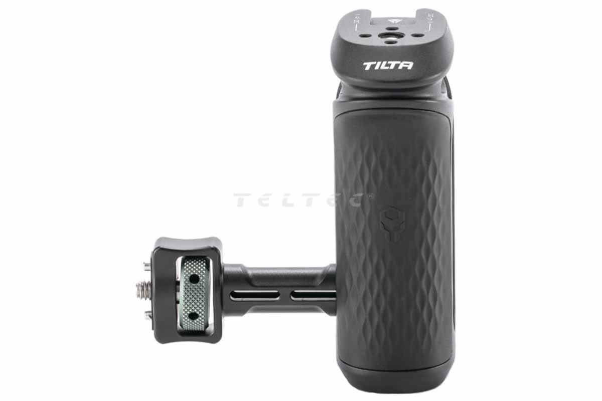 Die Konstruktion erlaubt den Einsatz als linker oder rechter Side-Handle, während die 40 mm höhenverstellbare Griffposition eine anpassbare Ergonomie für längere Handheld-Aufnahmen ermöglicht. Die rutschfeste Silikon-Textur erhöht die Stabilität beim Führen der Kamera. Zusätzliche Befestigungspunkte wie ein Cold-Shoe-Receiver sowie ein 1/4"-20 Gewinde mit Locating Points ermöglichen die Montage weiterer Zubehörteile. Ein integrierter 3-mm Inbusschlüssel erleichtert schnelle Anpassungen am Griff oder anderen Rig-Komponenten.