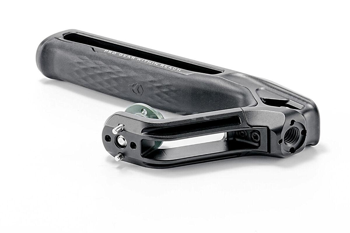 Das Tilta TA-XTH1-B Xeno Top Handle (1/4"-20 with Locating Pins) - Black ist ein Top Handgriff mit einer 1/4"-Gewindeschraube, um diesen an einem optionalen Kamerakäfig zu befestigen. Zur Montage von weiterem Zubehör sind mehrere 1/4" und 3/8" Gewinde mit Fixierpunkten in den silikongepolsterten Griff implementiert. An der Oberseite ist zudem eine Blitzschuhaufnahme integriert.