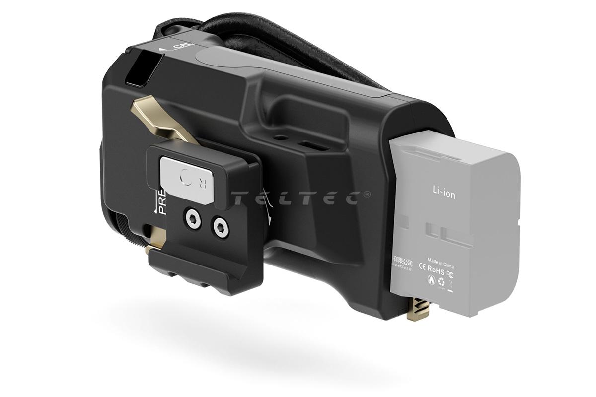 - NP-F570 Akkufach an der Unterseite des Griffes