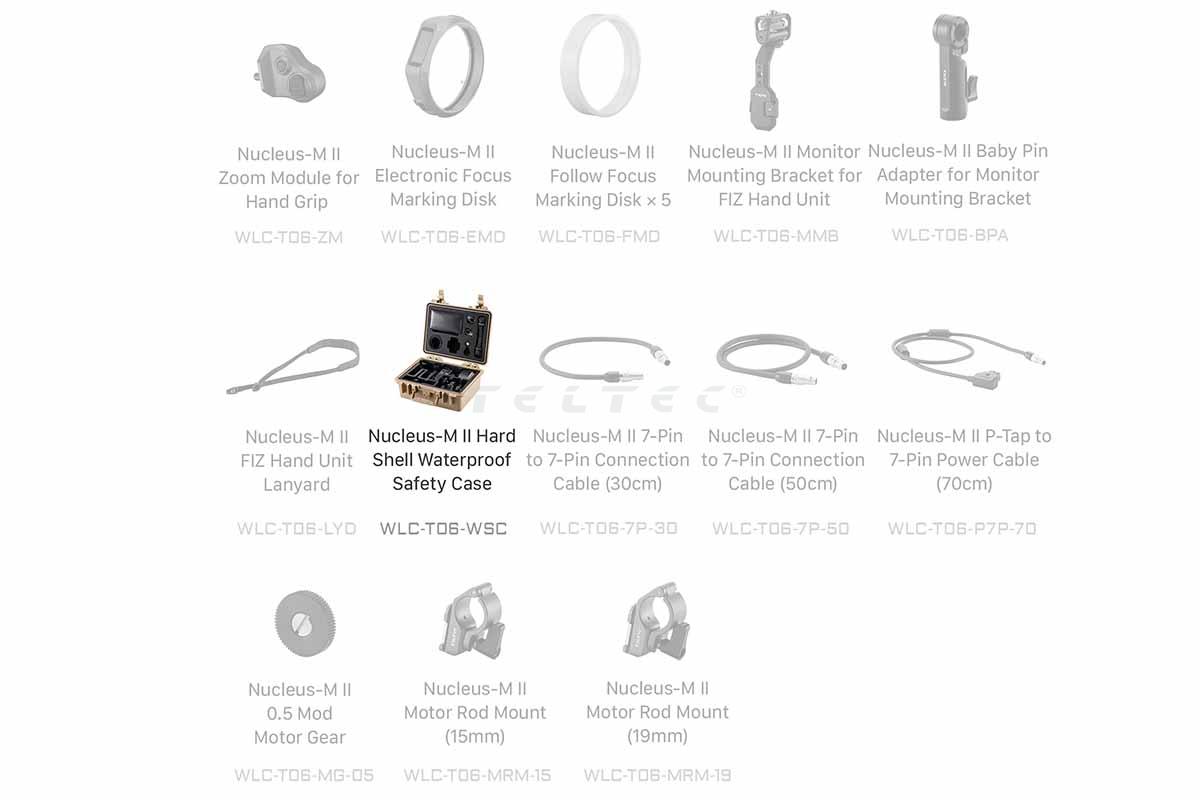 Der Tilta WLC-T06-WSC Nucleus-M II Hard Shell Waterproof Safety Case ist ein Aufbewahrungskoffer für das Nucleus-M II Set. Er trägt einen "Nucleus-M"-Schriftzug und kommt in sandigem Beige. Der Koffer bietet Schutz und ermöglicht eine sichere Transportation und Lagerung des Nucleus-M II Sets. Das Schaumstoff-Inlay ist speziell dafür angefertigt.