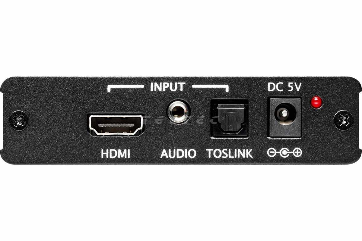 Der HDMI-Scaler tvONE 1T-VS-626 kann in das eingehende HDMI-Signal eingebettetes Audio oder von den separaten Toslink- oder analogen Stereoeingängen übernehmen. Der HDMI-Ausgang kann die gleiche Auflösung haben oder auf eine andere Auflösung skaliert werden. Das Ausgangsaudio ist gleichzeitig vorhanden, eingebettet in das HDMI-Signal und separat als Toslink und analoges Stereo. Dies bietet maximale Flexibilität bei der Systemintegration. Das Gerät ist ideal für Situationen, in denen die Auflösung und/oder Bildrate der HDMI-Quelle nicht mit der Auflösung/Bildrate des Anzeigegeräts kompatibel ist. Ein umfassendes OSD-Menü und Tasten auf der Vorderseite ermöglichen die Auswahl der Ausgangsauflösung, die Einstellung der Bildqualität und die Auswahl der Audioquelle. Es ist auch möglich, eine Audioverzögerung von bis zu 150 ms hinzuzufügen, um Lippensynchronisationsfehler zu kompensieren.