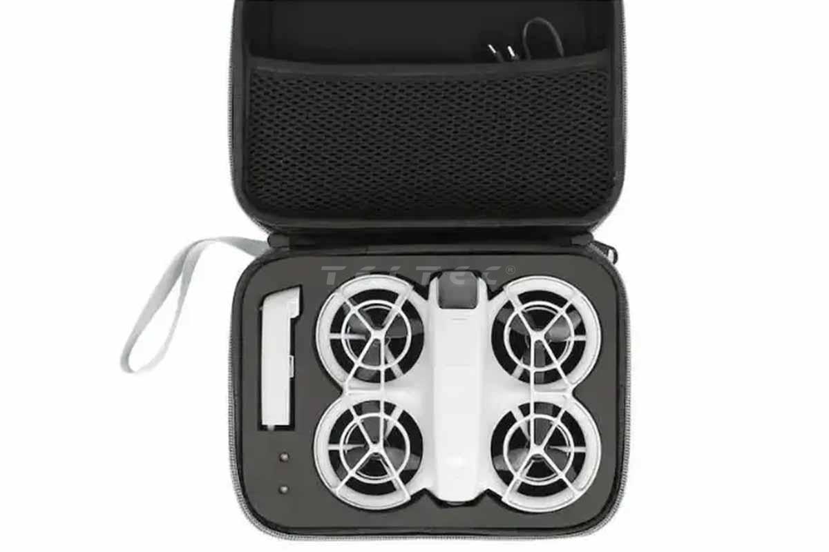 Das UniOEM - Case grau Stoffoptik für DJI Neo Single ist die ideale Tragelösung für die DJI Neo Drohne. Die kompakte Tasche bietet Platz für die Drohne mit einem eingesetztem Akku sowie einem zusätzlichen Akku. In dem im Deckel angebrachten Zubehörnetz können das USB-Ladegerät und Ladekabel verstaut werden. Außerdem bietet das Case eine praktische Trageschlaufe.