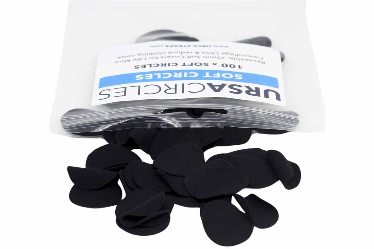 Die Ursa Straps 100x Soft Circles / Black sind dehnbare Schaumstoffüberzüge zur Störgeräuschprävention für Ansteckmikrofone. Sie können auch zusammen mit den separat erhältlichen Sticky Circles verwenden werden, um an jeder gewünschten Stelle angebracht werden zu können.