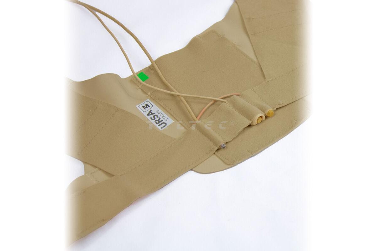 Der Ursa Straps X Strap Small - Black ist ein Rückengurt (Small) mit Taschen für optionale Taschensender und Lavalier-Mikrofon in Schwarz. Er kommt ohne Klettverschlüsse aus und bietet entlang der Brust vier Mikrofontaschen passend für je ein DPA 4060 und 6060, ein URSA MiniMount sowie eine größere Tasche für ein Sanken RM11 (Mikrofone und MiniMount nicht Teil dieses Artikels). An beiden Schultergurten gibt es zudem noch je eine kleine Tasche für ein MiniMount, um ein kompatibles Mikrofon seitlich zu führen. Die Innenseite der Gurte verfügt über mehrere Halterungen, um das Mikrofonkabel entlang dieser zu sichern.