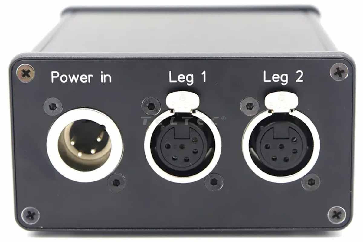 Die Waterbird MS XL Leg Control Unit for PanaPod ist eine Steuerungseinheit für ein bis zwei PanaPod-Beine. Neben der Möglichkeit, diese Einheit in ein MS XL- bzw. PanaTrack-System einzubauen, kann sie auch alleine genutzt werden, um die Hebe-Einheiten zu steuern, sofern entweder ein MS Phoenix Controller oder das HMI/Pedal- bzw. HMI/Joystick-Set angeschlossen ist. Dafür bietet die Steuerungseinheit entsprechende Ausgänge. Rückseitig befinden sich neben dem Stromeingang zwei Anschlüsse für je ein Bein des PanaPod. Auf der vorderen Seite gibt es neben Mikro-USB-Eingang auch zwei Ethernet-Eingänge und einen Serial (RS422) Anschluss. Betrieben werden kann die Leg Control Unit z.B. über den Core SWX Apex 360 HV Akku.