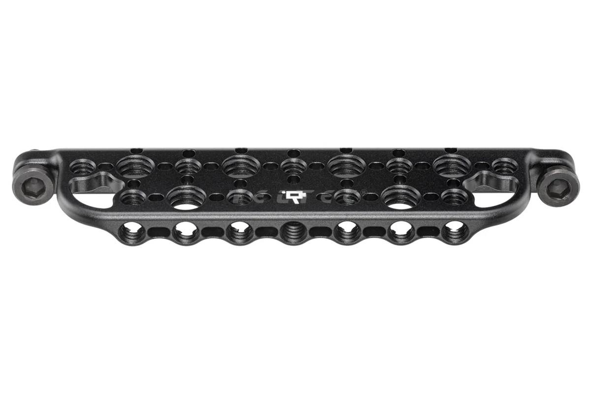 Die Wooden Camera Expansion Cheese Plate (Sony Venice, Venice 2) ist eine kleine Erweiterungs-Platte mit mehreren 1/4" und 3/8" Gewinden, die an der Top Plate angebracht werden kann und somit eine breitere Fläche für die Anbringung weiterer Zubehöre bietet.