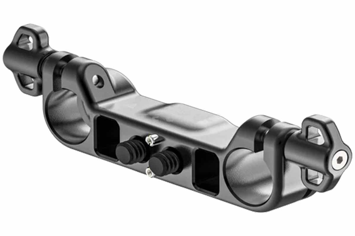 Das Wooden Camera Ultra Handle Dual Rod Clamp ist eine Dual-Rohr-Klemme, die mittels 1/4"-20-Schrauben an der nach außen gerichteten Seite des Ultra Handle Uprights (z.B. Ultra Handle Upright (Universal 3/8“-16), Ultra Handle Upright (Sony VENICE) oder Ultra Handle NATO Upright) angebracht wird. Damit ist es möglich 15-mm-Rods in einem LWS-Abstand direkt am Griffsystem zu befestigen, sodass beides bei einem Setup-Wechsel schnell abgenommen werden kann. Zwei verdrehsichere Montagestifte sorgen für eine robuste Montageoption, die eine Bewegung verhindert, während sie an den Uprights befestigt ist. Die Positionierung der Stangen, wenn sie mit dem Ultra Handle verbunden sind, ermöglicht die herkömmliche Montage von EVF-Systemen und anderen Anwendungen wie der Universal Dual Rod Clamp for Bolt-On Accessories, ohne dass beim Anbringen an den Rods Optiken o.ä. berührt werden.
