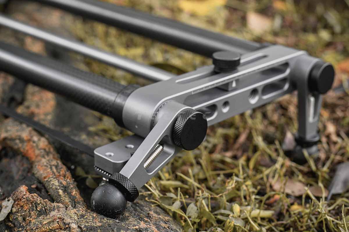 Die 360° fein einstellbaren ARRI-Stützbeine sind einziehbar und haben ein kugelförmiges Design, das für mehr Stabilität sorgt. Die Stützbeine lassen sich leicht an verschiedene Oberflächen wie Felsen, Gras, Baumstümpfe oder Strände anpassen. Man kann den HOTDOG prlx&pan Slider einfach mit einem BUN-Motor erweitern, um ihn zum YC Onion HOTDOG 3.0 Motorized Slider aufzurüsten. So kann zwischen manuellem und motorisiertem Betrieb gewechselt werden.