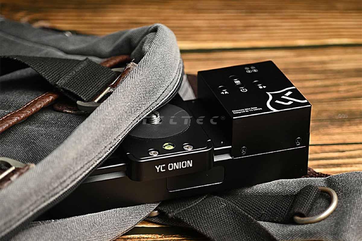 Der YC Onion CHOCOLATE SE Motorized Slider ist ein Slider im Travel-Format, der für Kompaktkameras entwickelt wurde. Er hat eine Tragkraft von 20 kg und kann Kameras bis zu 2,5 kg bei vertikalen Aufnahmen unterstützen. Mit einer iOS- oder Android-Smartphone-App über Bluetooth können Sie den Slider steuern, aber Sie können dies auch manuell tun. Der CHOCOLATE SE Motorized Slider verfügt über eine 3/8"-16-Montageschraube zur Befestigung der meisten Stativköpfe und Kugelköpfe. Auf der Oberseite des Sliders befindet sich eine Wasserwaage, mit der Sie Ihre Aufnahmen ausbalancieren können. An der Unterseite hat der Slider sowohl ein 1/4"-20 als auch ein 3/8"-16 Gewinde für die Stativbefestigung, wodurch er mit fast allen Stativen kompatibel ist.