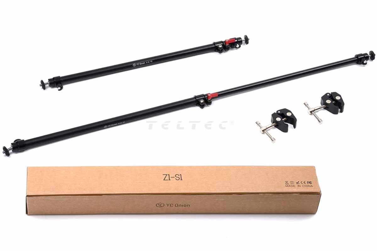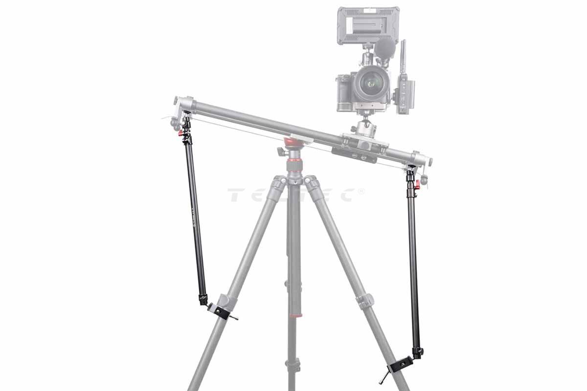 Verwende einen Slider nicht nur auf dem Stativ, sondern erweitere ihn mit den YC Onion Stability Arms, um zusätzlichen Halt und Stabilität zu schaffen. Diese verstellbaren Arme können von 58 bis 95 cm ausgezogen werden, so dass sie nach Belieben eingesetzt werden können. Die Unterseite der Arme wird an den Beinen des Stativs befestigt, die Oberseite wird in die Unterseite des Sliders geschraubt. An der Beinseite haben die Arme eine Halterung mit einem Mini-Kugelkopf. An der Oberseite befindet sich ein Mini-Kugelkopf mit einer 1/4"-20-Schraube, die in die Unterseite der Slider geschraubt wird.