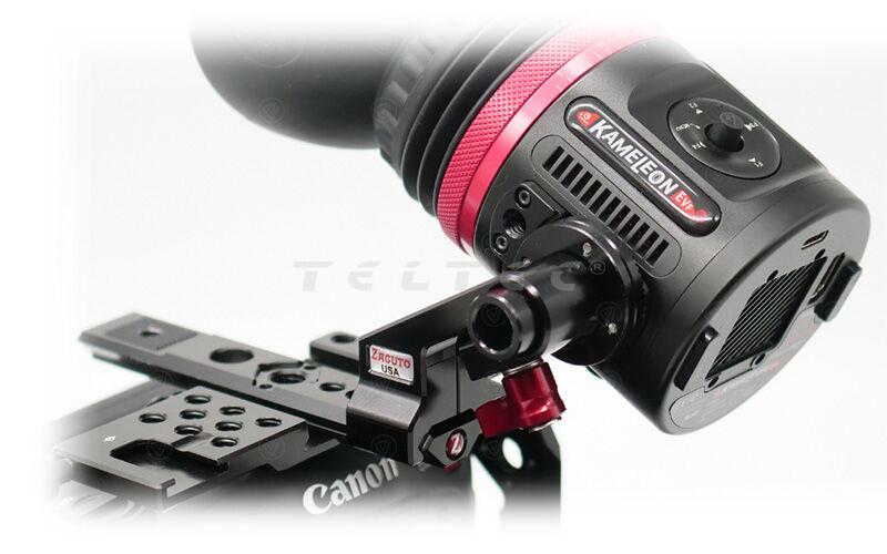 Der Zacuto Z-Rail Rosette Mount ist ein Adapter mit 15-mm-Rohraufnahme oder 1/4"-Rosette. Außerdem ist eine NATO-Klammer vorhanden für etwa Farbsucher mit NATO-Schienen an Käfigsystemen. Die Halterung ist kompatibel mit NATO-, Swat-, RED- und Wooden Camera Schienen.