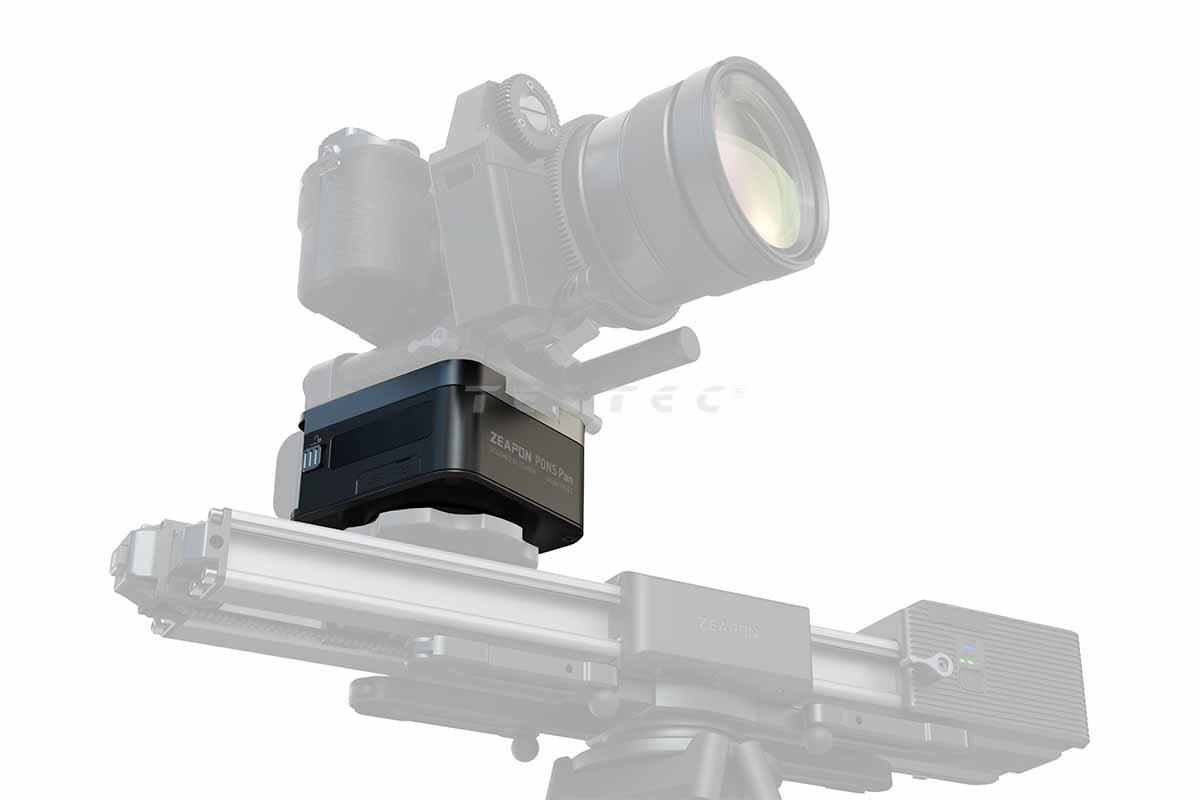 Der Zeapon Pons Motorized Pan Head ist ein kompakter, motorisierter Schwenkkopf für präzise Kamerabewegungen im Zeitraffer, bei Produktaufnahmen oder Panoramaaufnahmen. ZEAPON hat das Gerät für professionelle Anwender entwickelt, die 360°-Bewegungen automatisieren möchten. Der kompakte Kopf überzeugt durch sehr hohe Traglast von bis zu 50 kg (horizontal) sowie seine modulare Erweiterbarkeit. Die Steuerung erfolgt komfortabel über Tasten oder per Bluetooth mit der Zeapon Lab App. Dank USB-C-Anschluss und NP-F-Akkuaufnahme eignet sich das Gerät ideal für mobile Produktionen.
