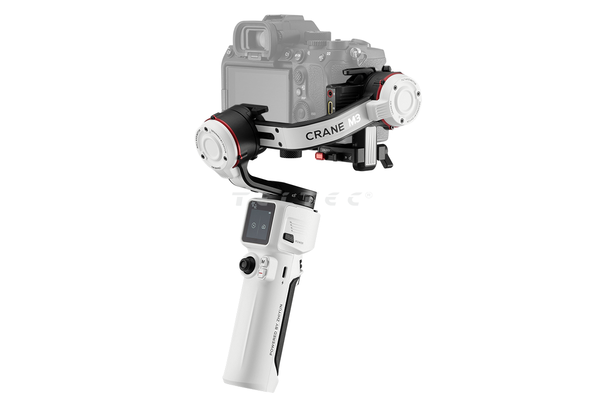 Das Zhiyun CRANE M3 ist ein kompaktes 3-Achsen Gimbal für spiegellose Vollformat-Kameras, Actionkameras oder Smartphones (Actionkameras und Smartphones benötigen zusätzliches Zubehör). Über das ergonomisch angeordnete Bedienfeld und das 1,22"-Touchscreen-Display ist eine Einhand-Bedienung möglich. Das vorhandene Einstellrad lässt sich mehrfach belegen, sodass die Funktions-Steuerung und die Anpassung von Kameraeinstellungen ermöglicht wird. Die Anbringung oder der Wechsel der Kamera wird schnell und einfach über die überarbeitete Schnellwechselplatte arrangiert. Im CRANE M3 ist eine Videoleuchte mit 800 Lumen und anpassbarer Farbtemperatur von 2600 K bis 5600 K integriert, um rauscharme und gut beleuchtete Aufnahmen zu erhalten. Der verbaute 1150 mAh Akku bietet eine Laufzeit von bis zu 8 Stunden und lässt sich mittels 12 W PD-Schnellladetechnik in ca. 2 Stunden wieder vollständig laden.