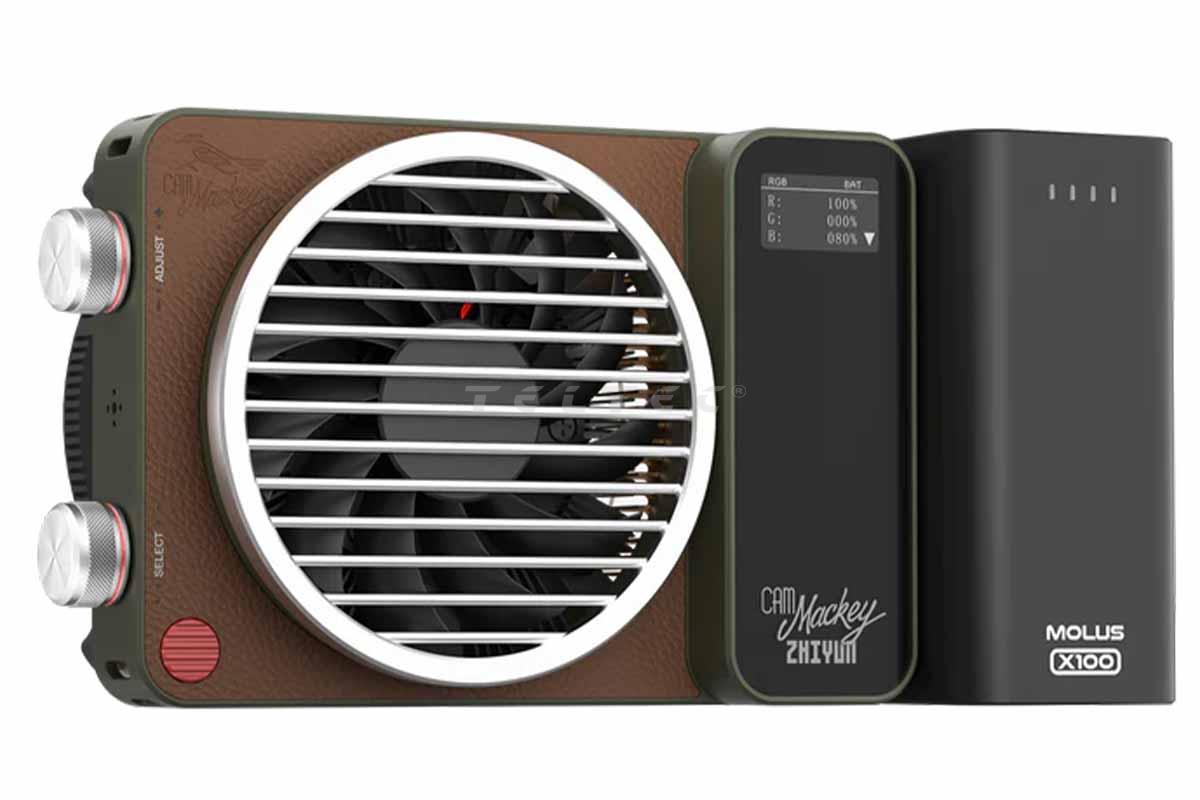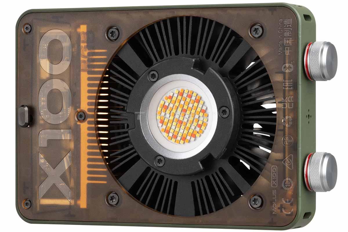 Die Zhiyun MOLUS X100 RGB PRO umfasst die X100 RGB LED sowie weiteres Zubehör. Die MOLUS X100 RGB ist eine kompakte RGBWW LED Leuchte mit einer Ausgangsleistung von 100 W, die einem Farbtemperaturbereich von 2.700 K - 10.000 K bietet. Die X100 RGB kann mit dem abnehmbaren Griffakku ausgestattet werden, der eine Kapazität von 55,08 Wh bietet und eine Laufzeit von 34 Minuten bei voller Leistung ermöglicht. Zusätzlich stehen ein DC- und einen PD-Anschluss für die flexible Stromversorgung zur Verfügung. Die integrierte Aufnahmefunktion ermöglicht eine automatische Lichtsteuerung im Takt der Musik und schafft so dynamische, rhythmusbasierte Lichteffekte. Durch die neu entwickelte Anordnung der Lichtperlen und die optimierte Mischlicht-Technologie liefert die X100 RGB brillante RGB-Farben auf Hauptlichtniveau bei einer maximalen gemischten Lichtleistung von bis zu 85 W. Für eine effiziente und nahezu geräuschlose Wärmeableitung sorgt die innovative Dynavort-Technologie. Dank des Dual Mount Modifier-Ökosystems und der speziell entwickelten ZY-Halterung ist die Leuchte sowohl mit Zhiyun Mini-Lichtmodifikatoren als auch mit Bowens-kompatiblen Modifikatoren flexibel einsetzbar. Ein Zhiyun Mini Lens Reflector zur Verbesserung der Helligkeit und Lichtverteilung ist ebenfalls im Lieferumfang enthalten. Des Weiteren umfasst die PRO-Version ein 4-fach Flügeltor, die X100 RGB Grip-Batterie sowie ein Bowens-Mount-Adapter, die Zhiyun Softbox 40D sowie eine Aufbewahrungstasche enthalten.